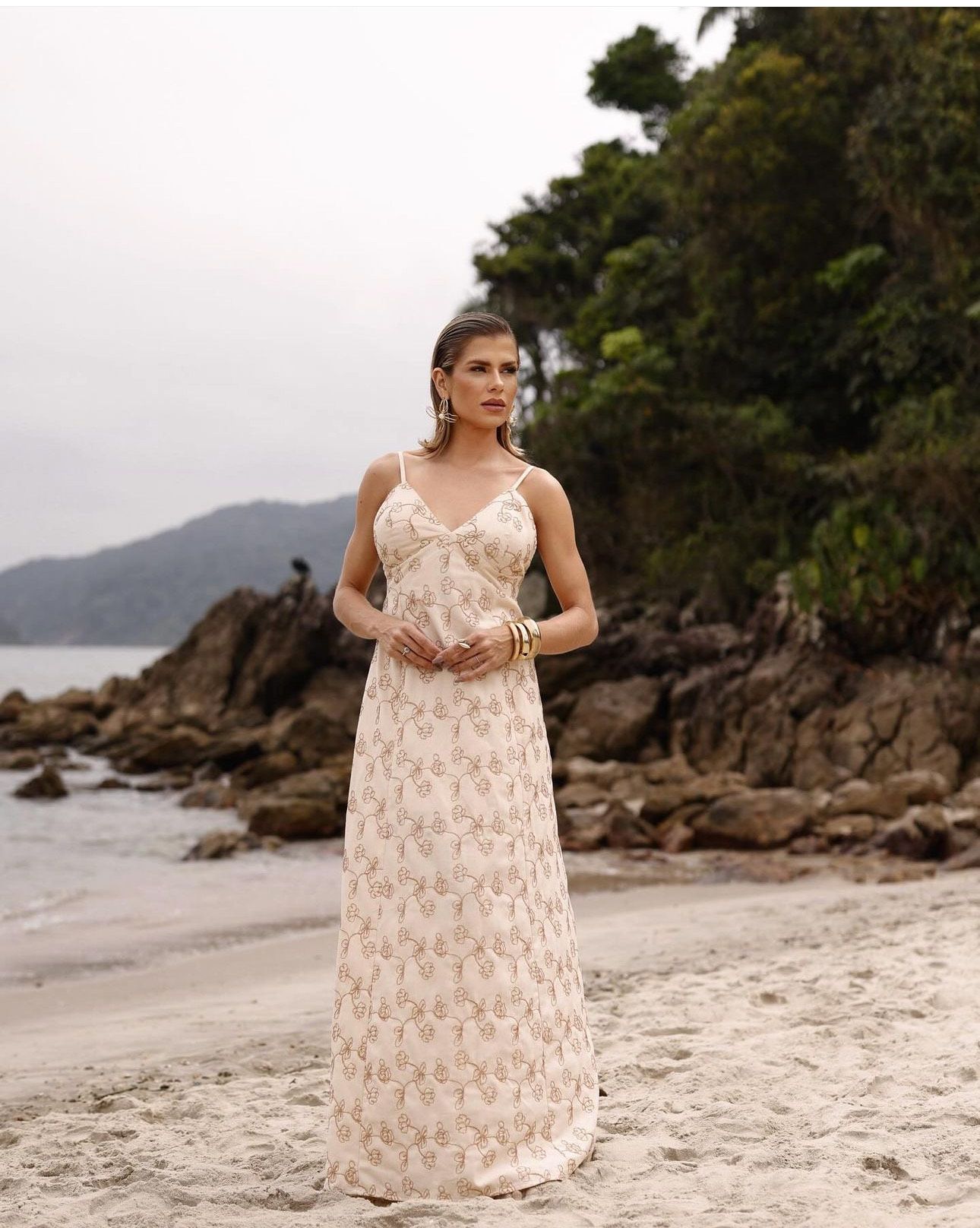 Das lange Kleid AMÉLIA ist aus hochwertigem Leinenstoff gefertigt, der für seine Leichtigkeit, Frische und Eleganz bekannt ist. Dieses Material sorgt nicht nur für hohen Tragekomfort, sondern auch für einen makellosen Fall, der die Anmut des Kleides unterstreicht. Ein besonderes Highlight ist die feine, handgefertigte Blumenstickerei in Kupfertönen, die dem Kleid einen einzigartigen und edlen Charme verleiht. Jedes Detail wurde sorgfältig durchdacht, um ein Stück zu schaffen, das Schönheit, Tradition und Exklusivität vereint – ideal für besondere Anlässe oder für alle, die zeitlosen Stil schätzen.