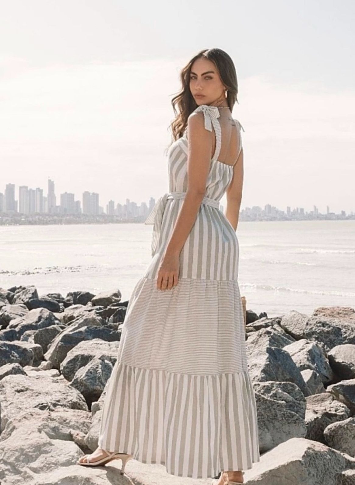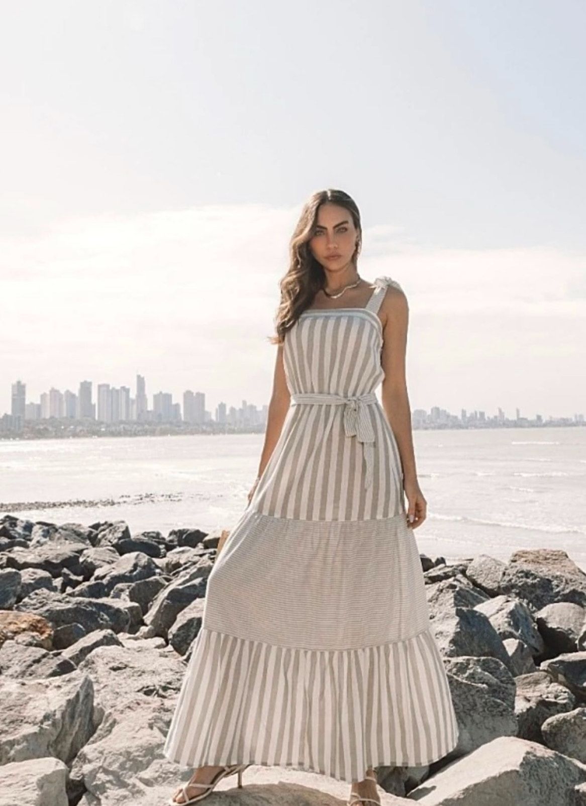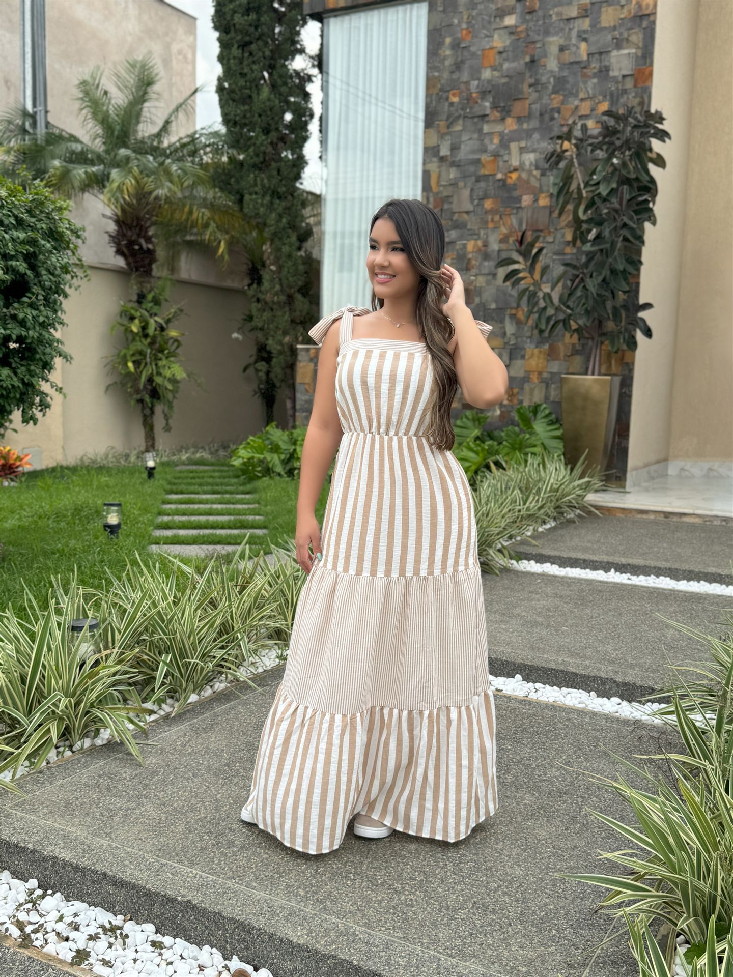 Eleganz in einem einzigartigen Stück! Das gestreifte Kleid Ametista in Weiß und Nude vereint auf perfekte Weise Raffinesse und Vielseitigkeit. Mit verstellbaren Trägern zum Binden und einem zarten Taillenband betont es die Silhouette mit Eleganz und sorgt für einen makellosen Sitz. Dieses handgefertigte Modell verbindet Komfort und Stil, greift die Trendfarbe 2025 auf und bringt moderne Frische in deine Garderobe. Exklusives Einzelstück, erhältlich nur in Größe M. Beginne das Jahr mit einem einzigartigen und unvergesslichen Look – das Kleid Ametista ist die perfekte Wahl für alle, die auffallen möchten.