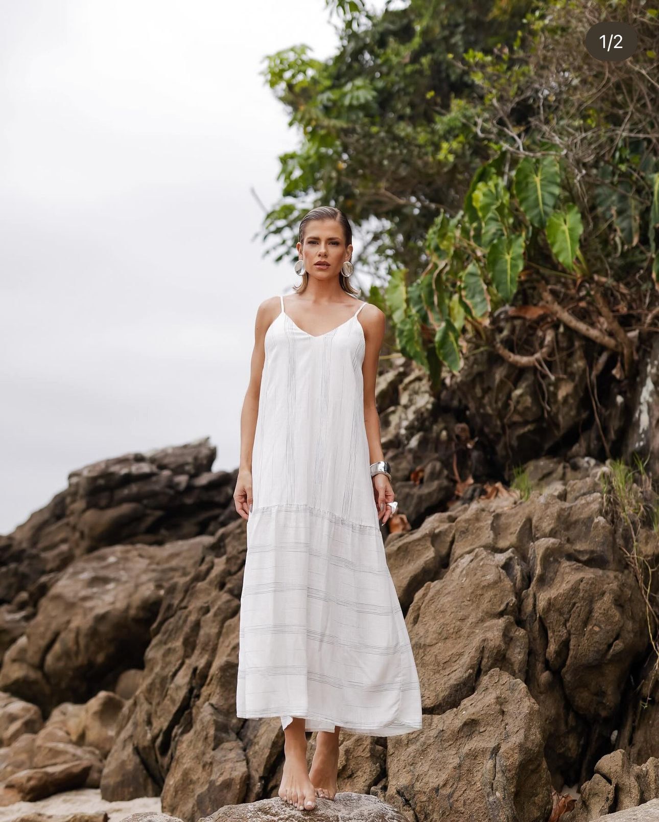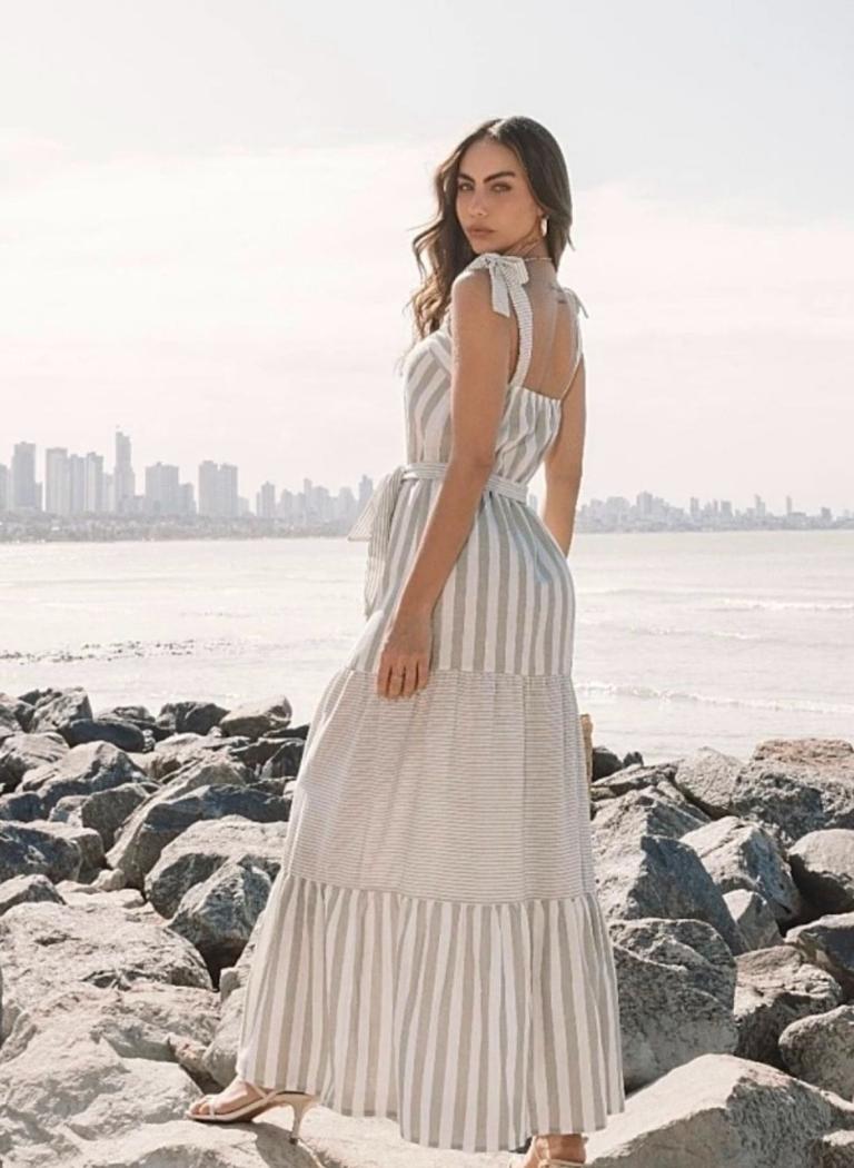 Ein zartes und elegantes Kleid – perfekt für alle, die Wert auf Komfort legen, ohne dabei auf Stil zu verzichten. Mit feinen Trägern bietet es eine leichte, luftige Passform, ideal für warme Tage. Das Streifenmuster verleiht dem Kleid eine dezente Note von Raffinesse, während der Schnitt am Saum ein modernes und exklusives Detail hinzufügt. Der fließende Fall sorgt für Bewegungsfreiheit und macht das Kleid zu einer vielseitigen Wahl für verschiedene Anlässe – von entspannten Spaziergängen über lockere Treffen bis hin zu informellen Events. Ein zeitloser Klassiker, der Praktikabilität und Charme in einem einzigartigen Look vereint.