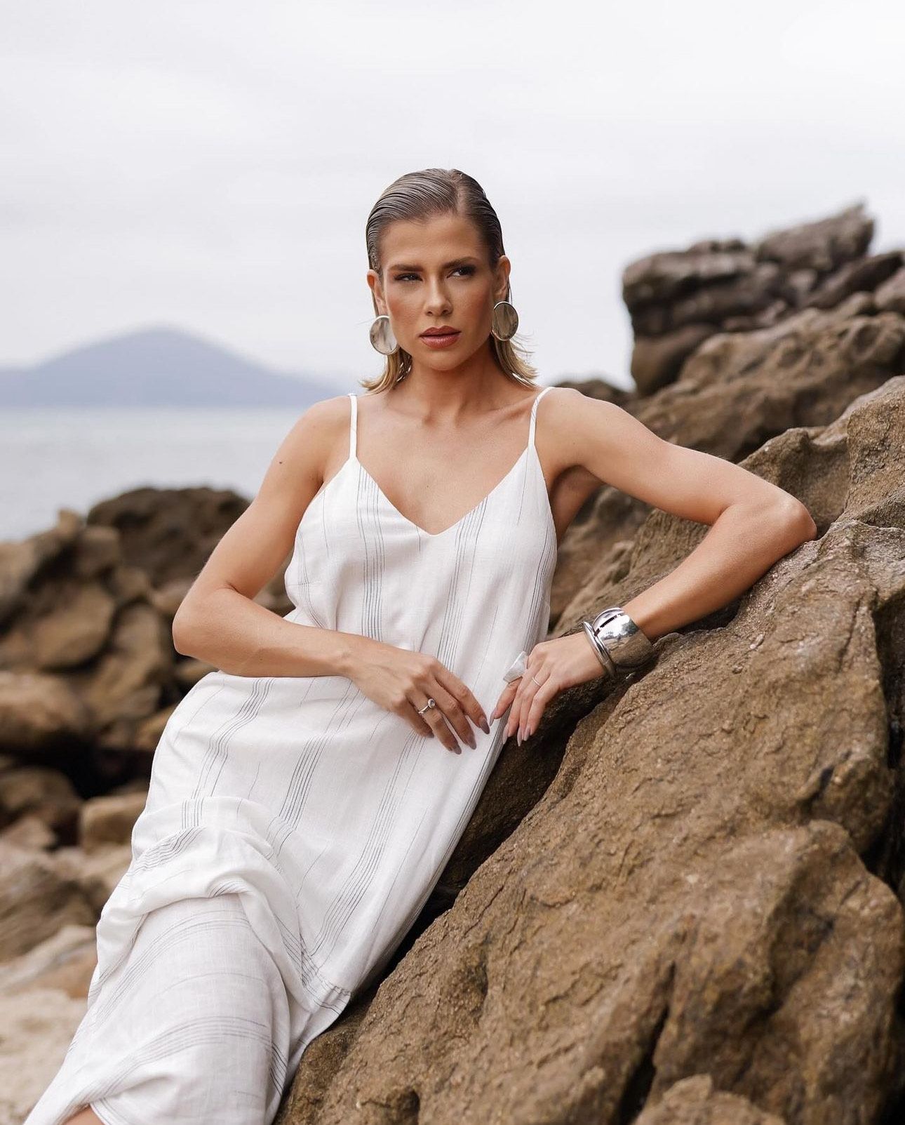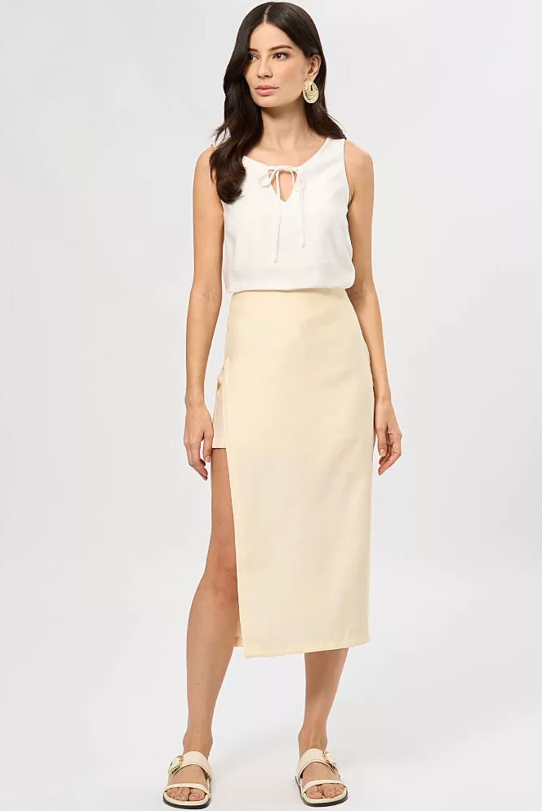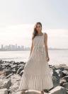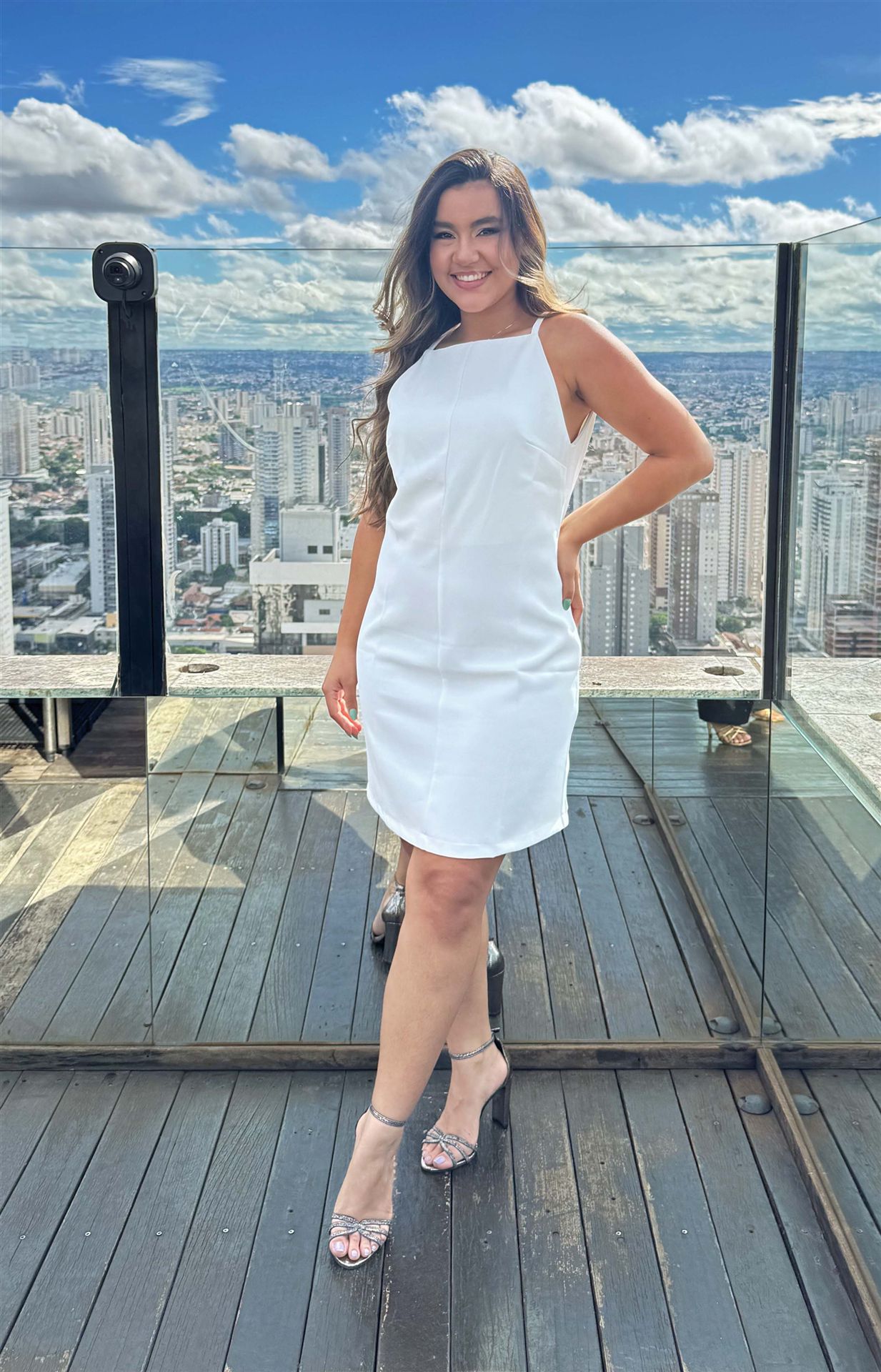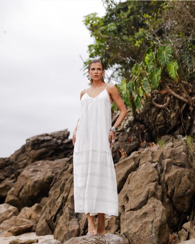 Ein elegantes, minimalistisches weißes Kleid mit einer Länge oberhalb der Knie und feinen Trägern, entworfen, um deine Schönheit durch schlichte Eleganz hervorzuheben. Gefertigt aus einem leichten, fließenden Stoff, betont es die Silhouette auf dezente Weise und verleiht Frische und Raffinesse zu jedem Anlass. Perfekt für Outdoor-Events oder entspannte Momente – harmoniert ideal mit Sandalen und dezentem Schmuck und kreiert einen leichten, charmanten und stilvollen Look.